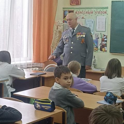 На классный час в 5б класс (классный руководитель Бальбекова Ю.И.) был приглашен Баков Алексей Юрьевич лейтенант милиции в отставке, занимавший должность начальника ПДН в г. Горячий Ключ и являющийся отцом ученика 5б класса.