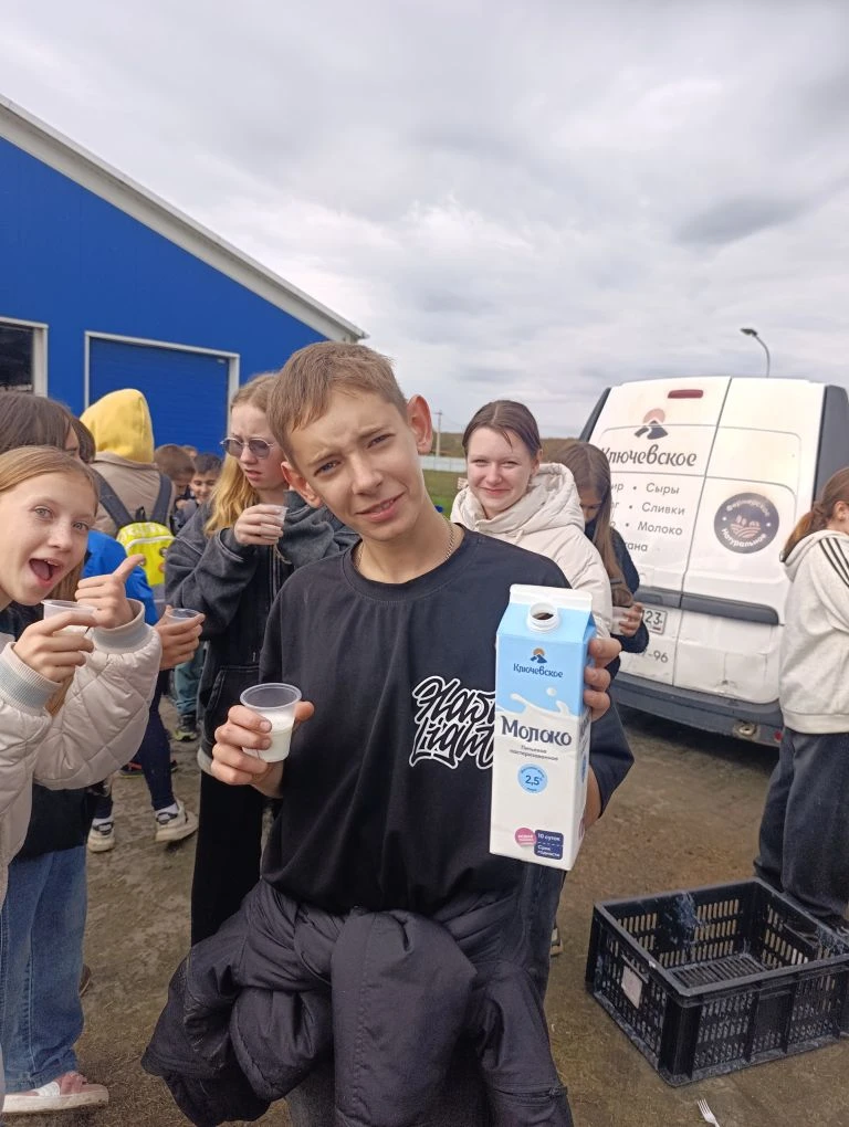 К сожалению цех по переработке для нас остался тайной, но нам дали продегустировать вкуснейшие продукты, которые сделаны из молока уведенных нами коров. Учащимся очень понравилась данная экскурсия!